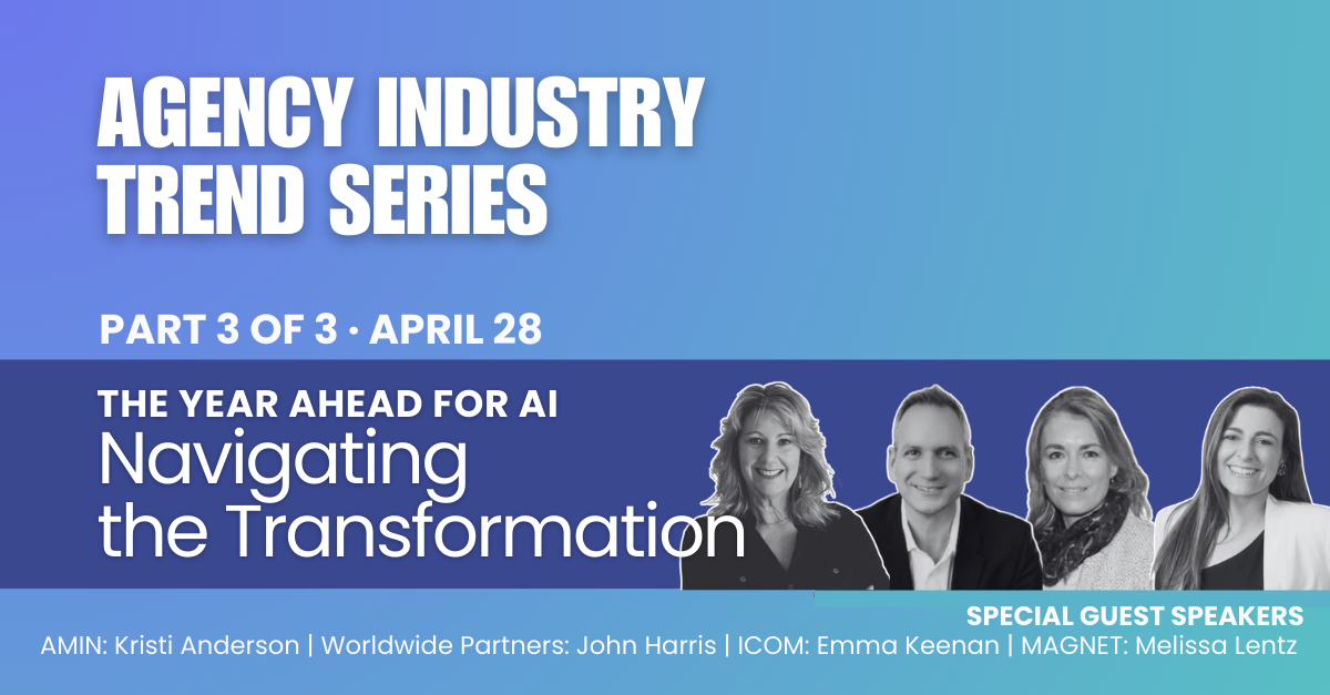 In our final Agency Trends Forum session, our group will share what’s ahead for AI implementation across the industry, including overall progress, new best practices, and approaches to overcoming key challenges.